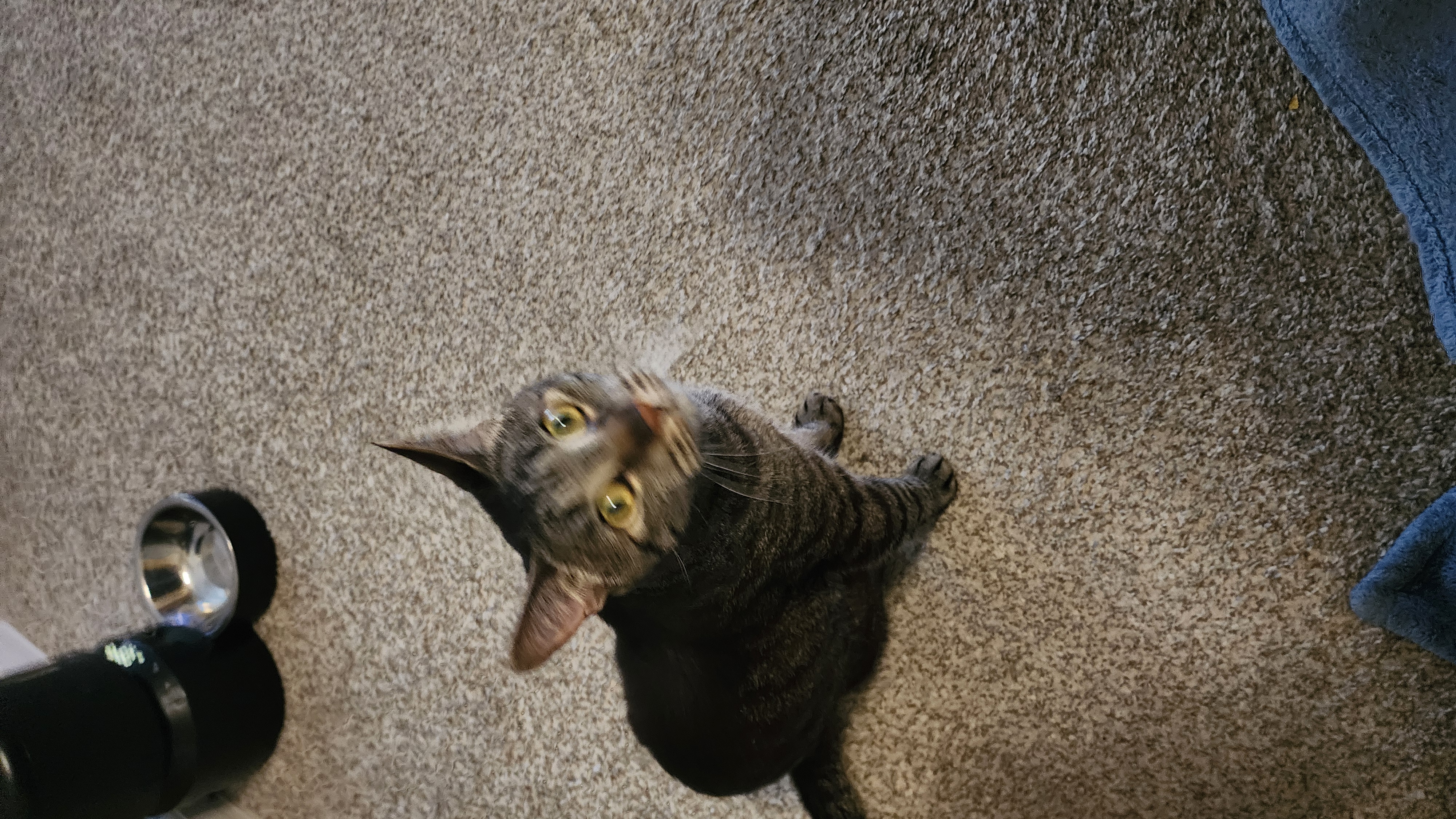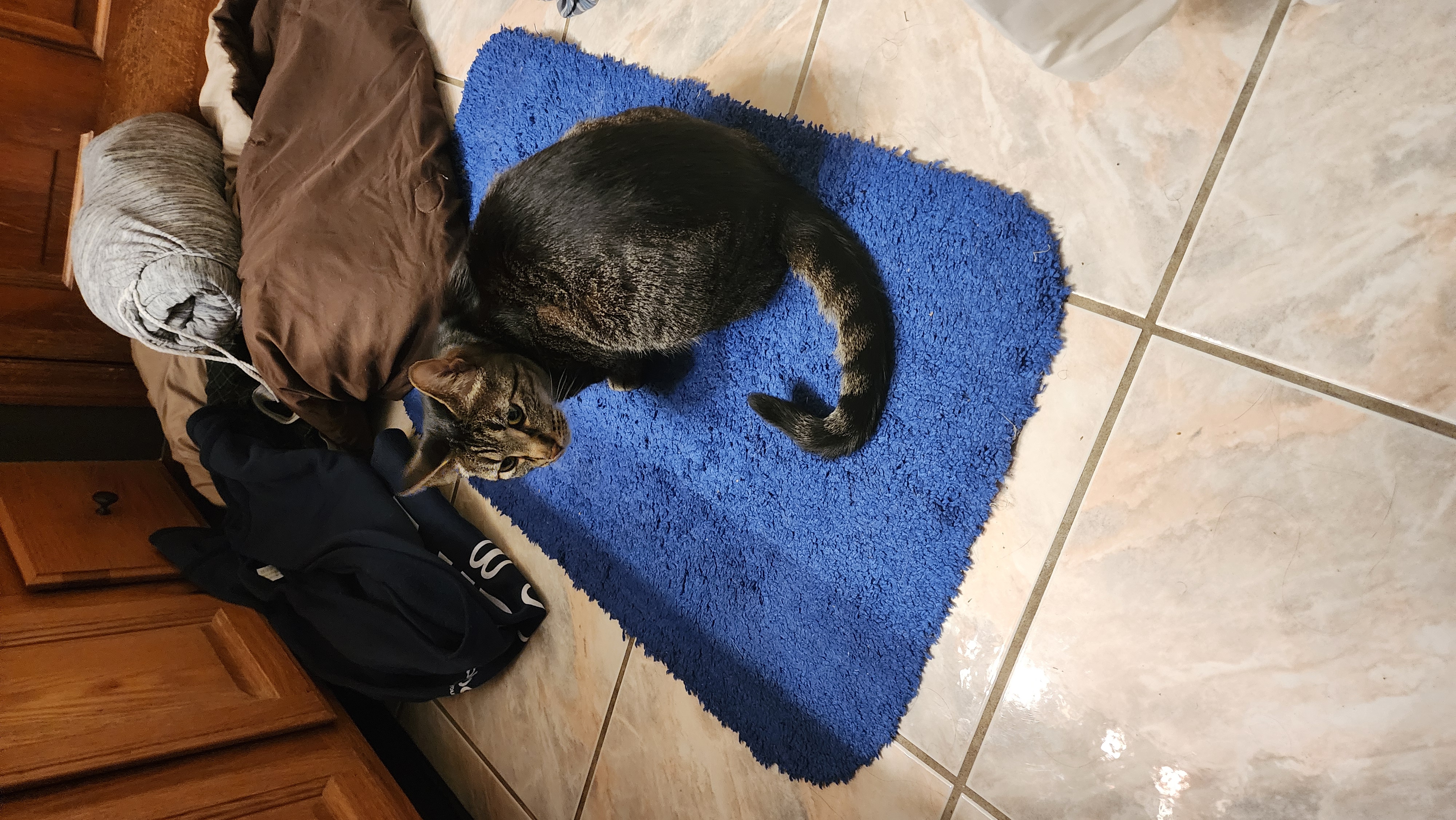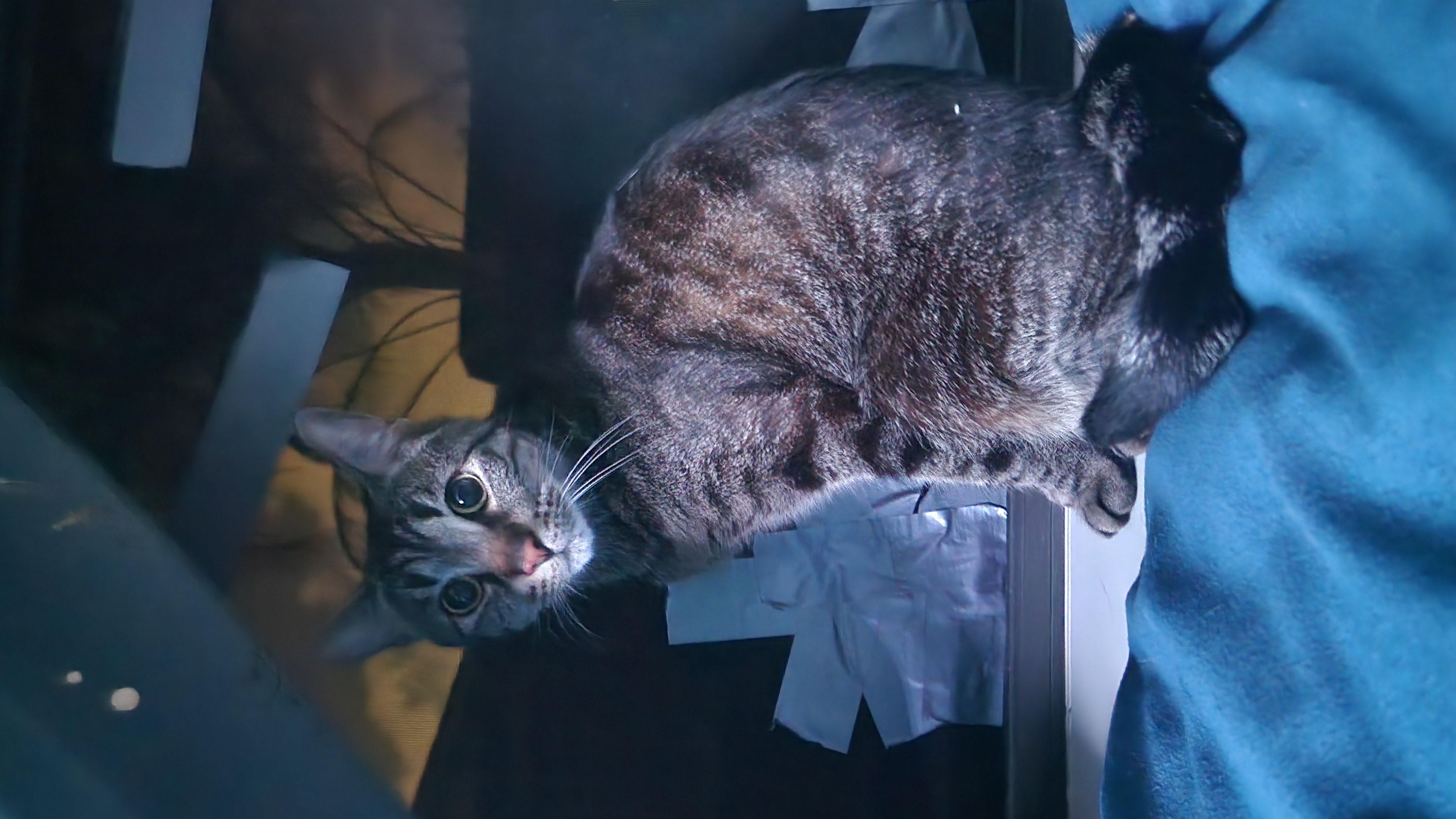 Hes a shy skittish cat, tends to hide.