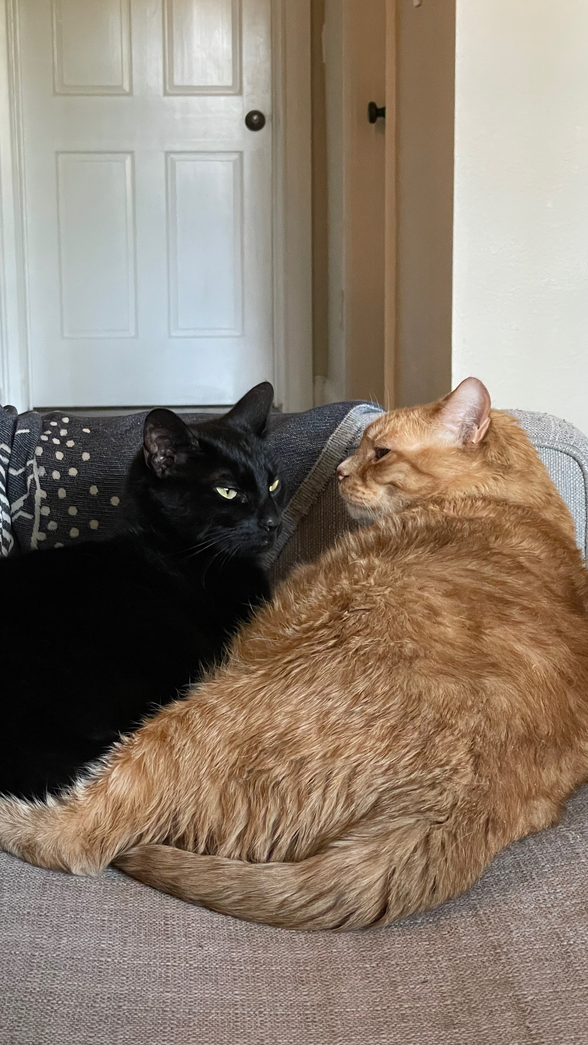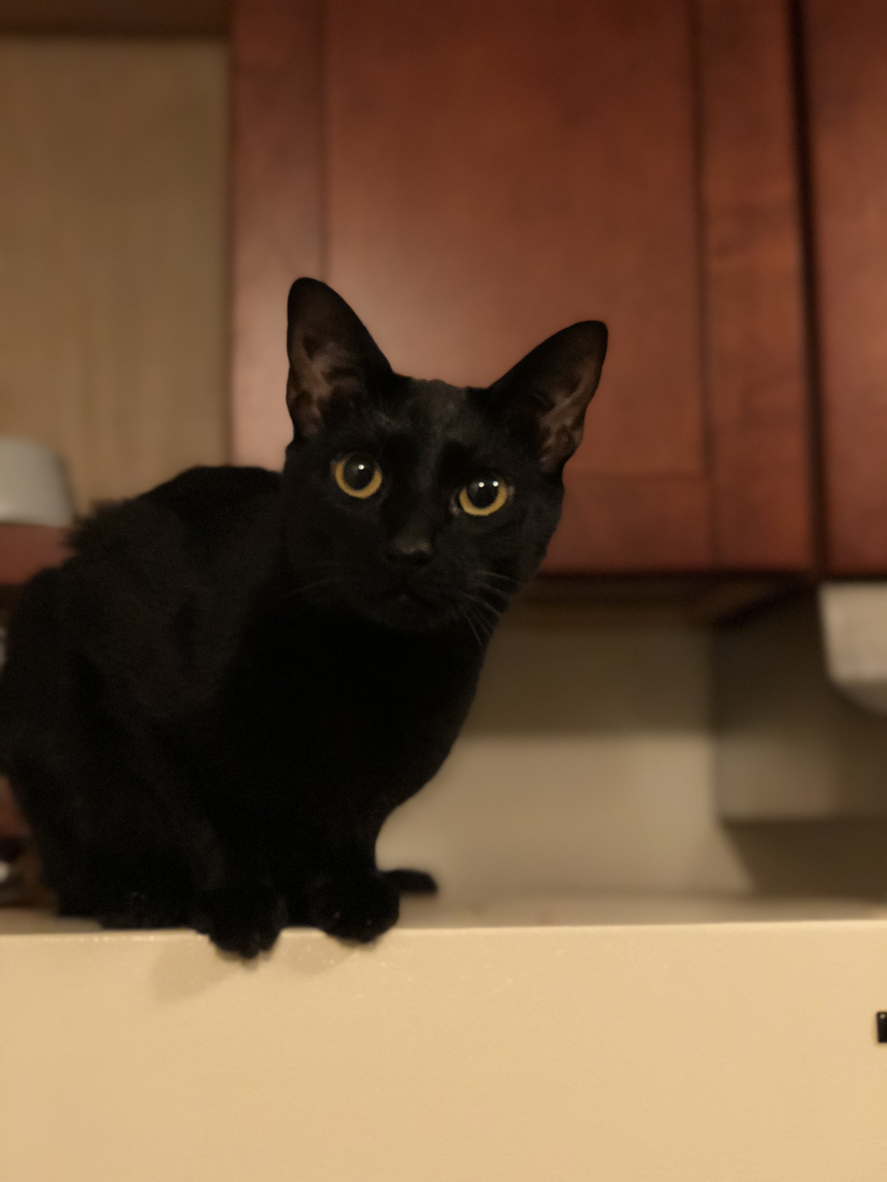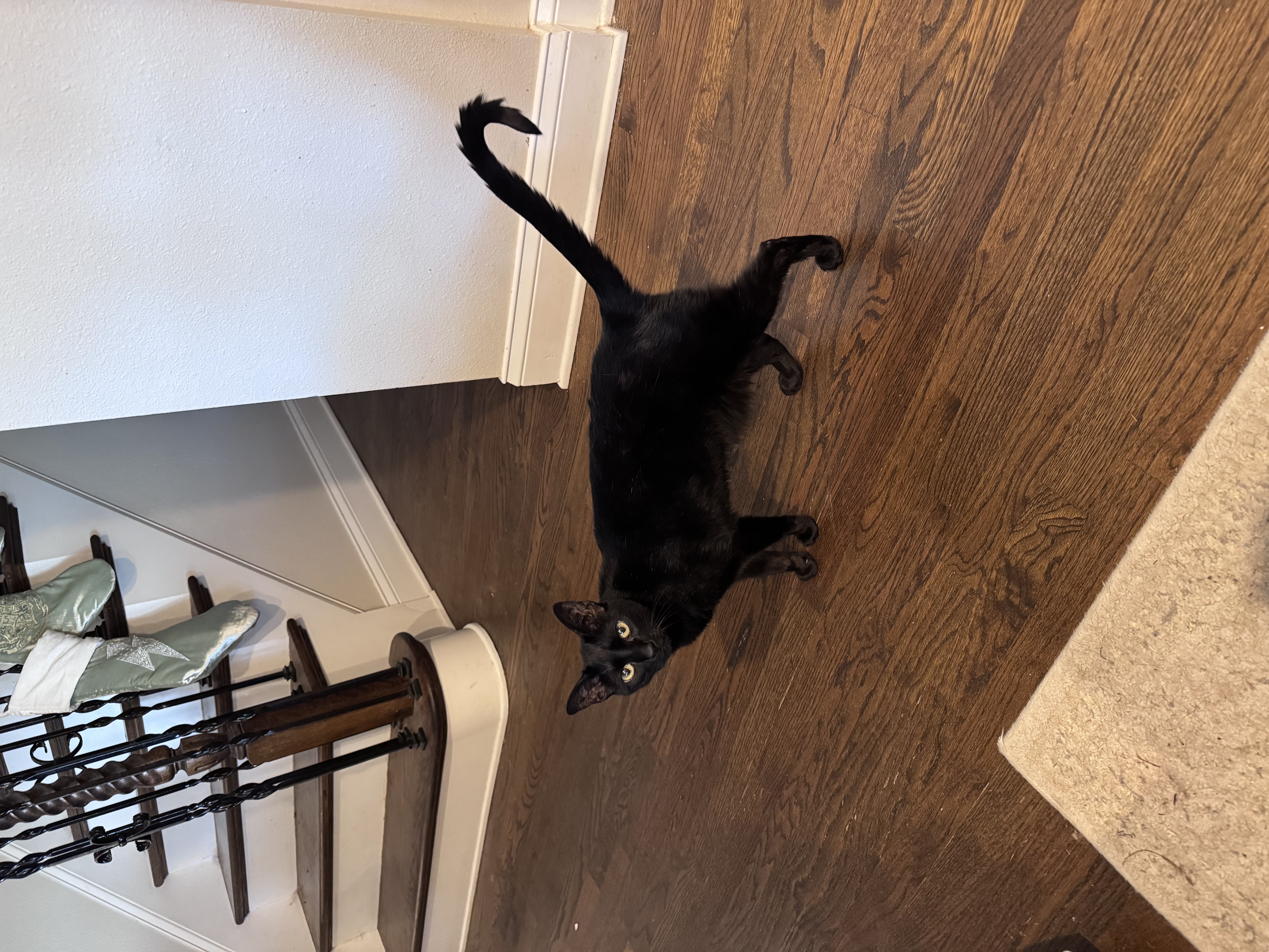 Looks younger than he is. Skinny black cat with very long tail. Skittish, do not approach. Likes to hide out in garages so if your garage was open last night please check. Our door wasnt closed right and was pushed open by the wind so he got out. He’s a sweetheart and we’re missing him dearly. We just lost his older brother last month to diabetes so we’re devastated he’s missing. Please check your cars and garages. He was hiding in a neighbors garage last time he got out